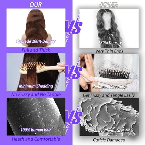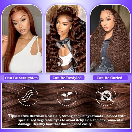13x6 Lace Front Wigs Human Hair Material: Made of 100% unprocessed Brazilian virgin human hair wigs, soft and bouncy, advanced hand-tied avoid shedding, no tangling—just lush, healthy hair. The latest trendy chocolate brown color enhances any outfit and suits all skin tones and occasions. Human hair wigs for black women use professional plant-based dyed, allowing for effortless dyed, curled, straightened, styled just like your own bio hair.